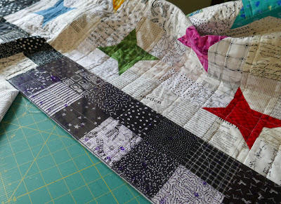 I have finished two quilts recently -- my black and white rainbow version of Mississippi Mud is ready to bind. I kept the quilting very simple! If you missed my posts about this new color version, you can check it out